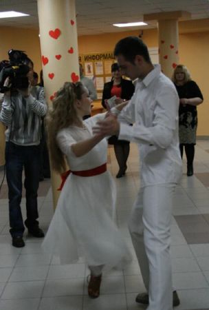 14.02.2012г всем посетителям Дворца торжеств при входе вручались «открытки-валентинки» с кратким описанием истории праздника и пожеланиями долгой, счастливой семейной жизни. В 9:00 в лекционном зале классический «Венский вальс», представленный творческим объединением «Танцующий дом», торжественно открыл неделю Любви и Доброты.