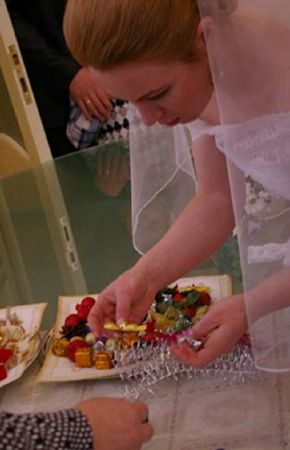 На мастер-классе, приуроченном к годовщине со дня открытия Дворца торжеств и международному Дню яйца, все гости с удовольствием изготавливали соломенные сувениры, в основе которых тоже лежали футляры из-под колец.