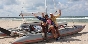А папа – глава семейства ждет, когда маленькие ручки, будут увереннее держать шкоты и стропы.
